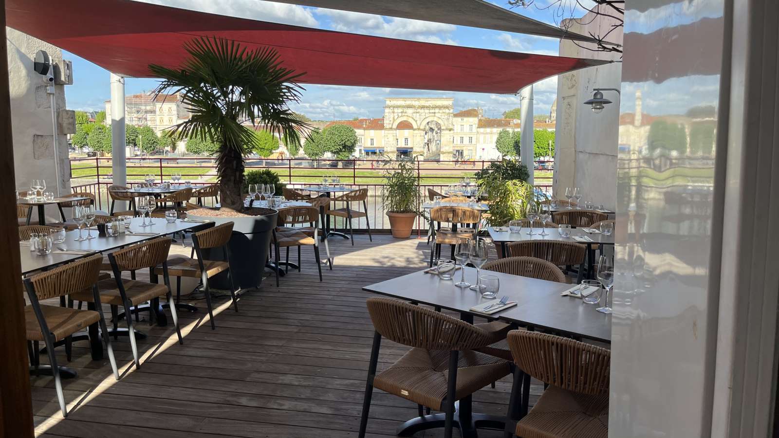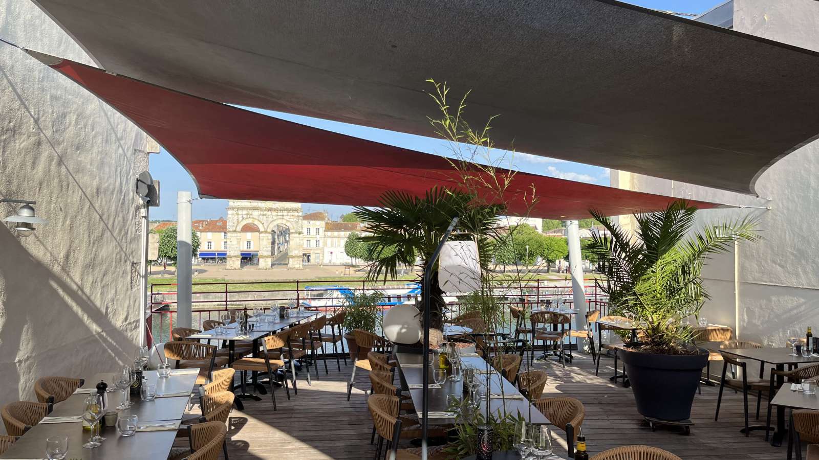 Prenez de la hauteur en vous installant sur la terrasse de ce restaurant pour profiter pleinement de la vue panoramique sur la Charente et l'Arc de Germanicus.