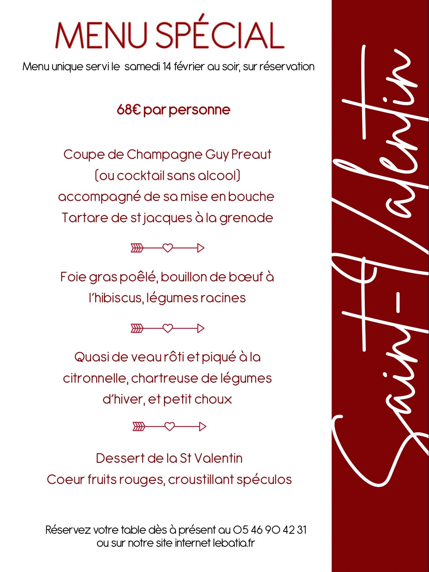 - Les Saveurs de l’Abbaye – Menu à 75€ servi le 13 et le 14 février
