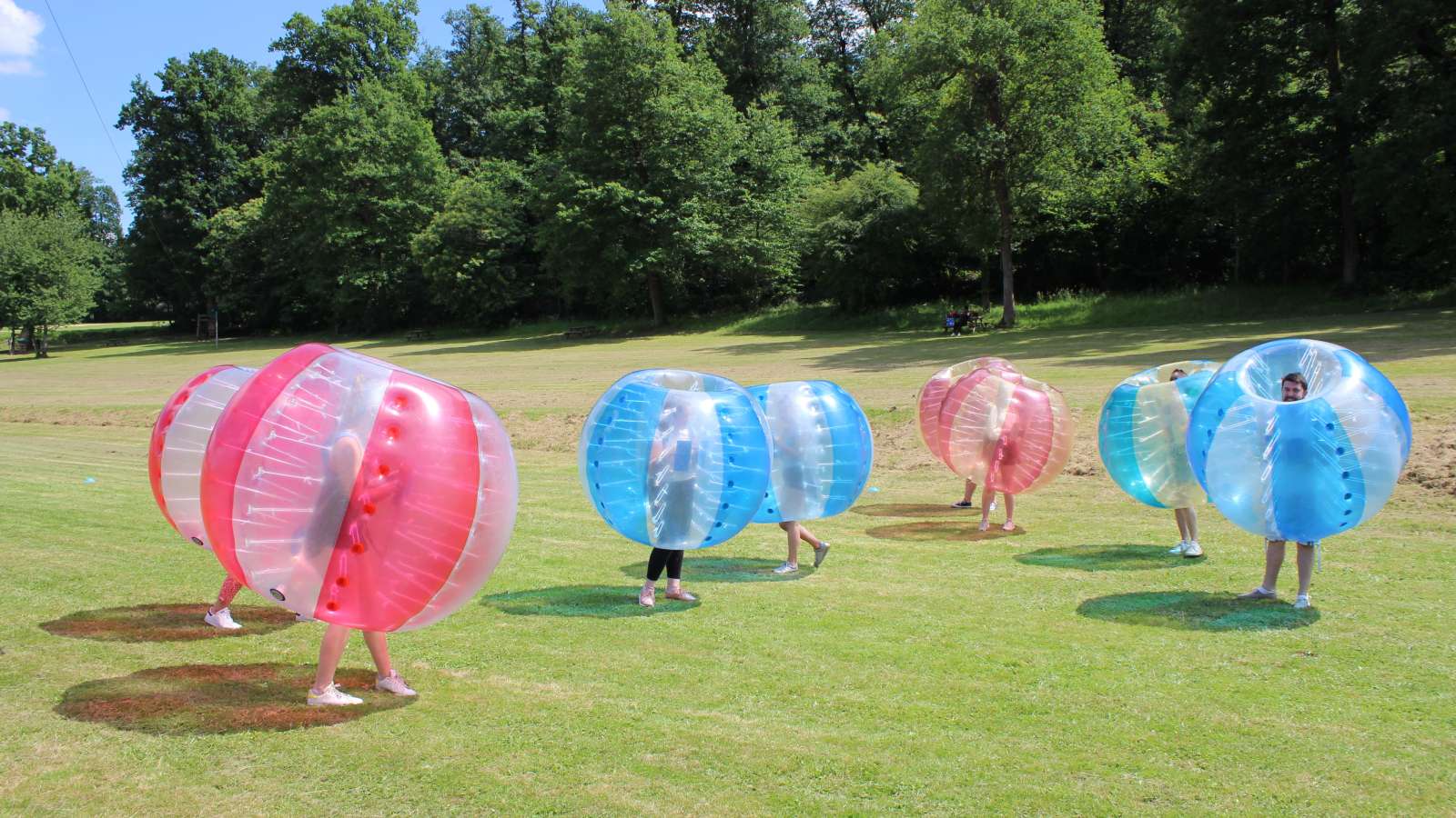Eclatez-vous en jouant au Bubble Foot avec vos amis ! Autour d'un match ou de différents jeux d'équipe, déstabilisez vos adversaires en tentant de les faire tomber. Avec votre grosse bulle, vous terrasserez tout sur votre passage !