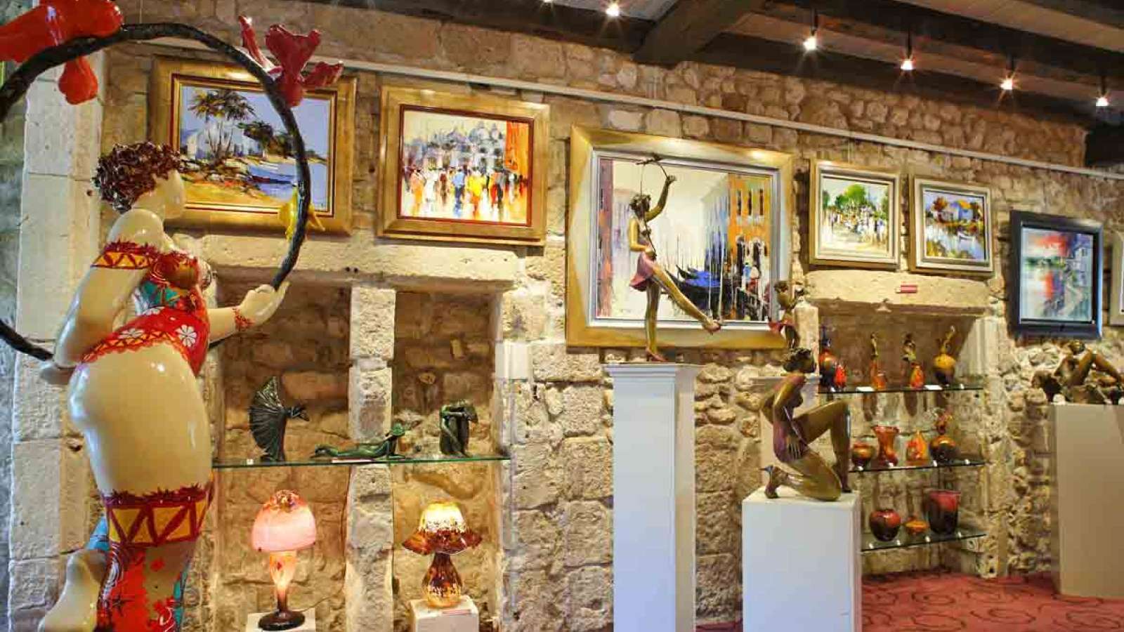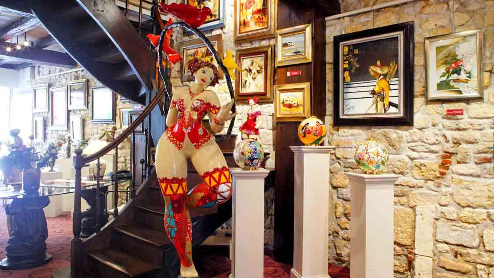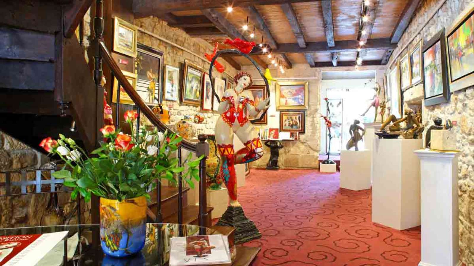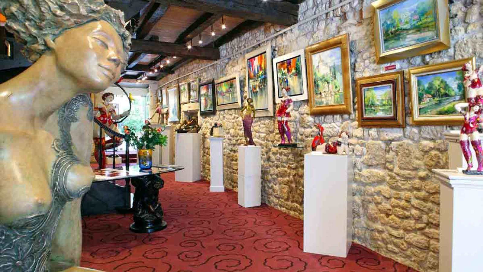 Les peintures de : BLIGNY, CARRON, COQUILLAY, COROMINAS, DONNAT, A.JANSEN, LUDIVINE, MESSAGGIO, Raymond POULET, R. de PRÉMARE, A.RAUTUREAU,JC ROY, SCHVAN, TEIXIDO, VALADIÉ ; Les sculptures de : JOSEPHA, MIROGI, De SUTTER, De BLOCK; les œuvres des maîtres verriers: GAMBIER, MATHELIN,PIERINI ainsi que les émaux de Longwy vous séduiront. Vous serez conseillés et accompagnés dans votre choix.