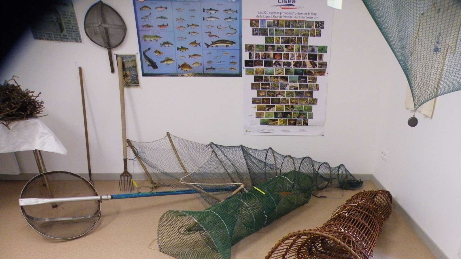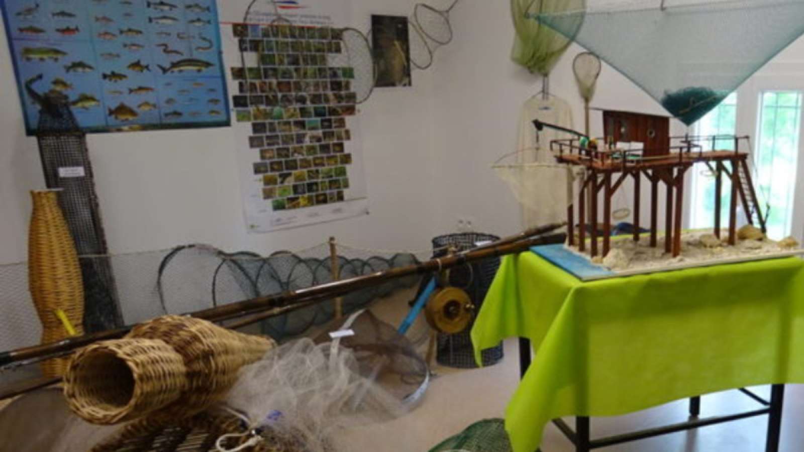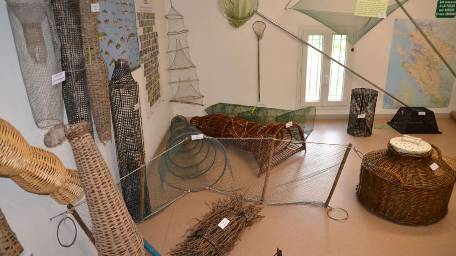 Le musée expose différentes nasses anguillières, tramailles, carrelets, balances avec leurs diverses évolutions historiques. Ainsi que des cannes et moulinets anciens.