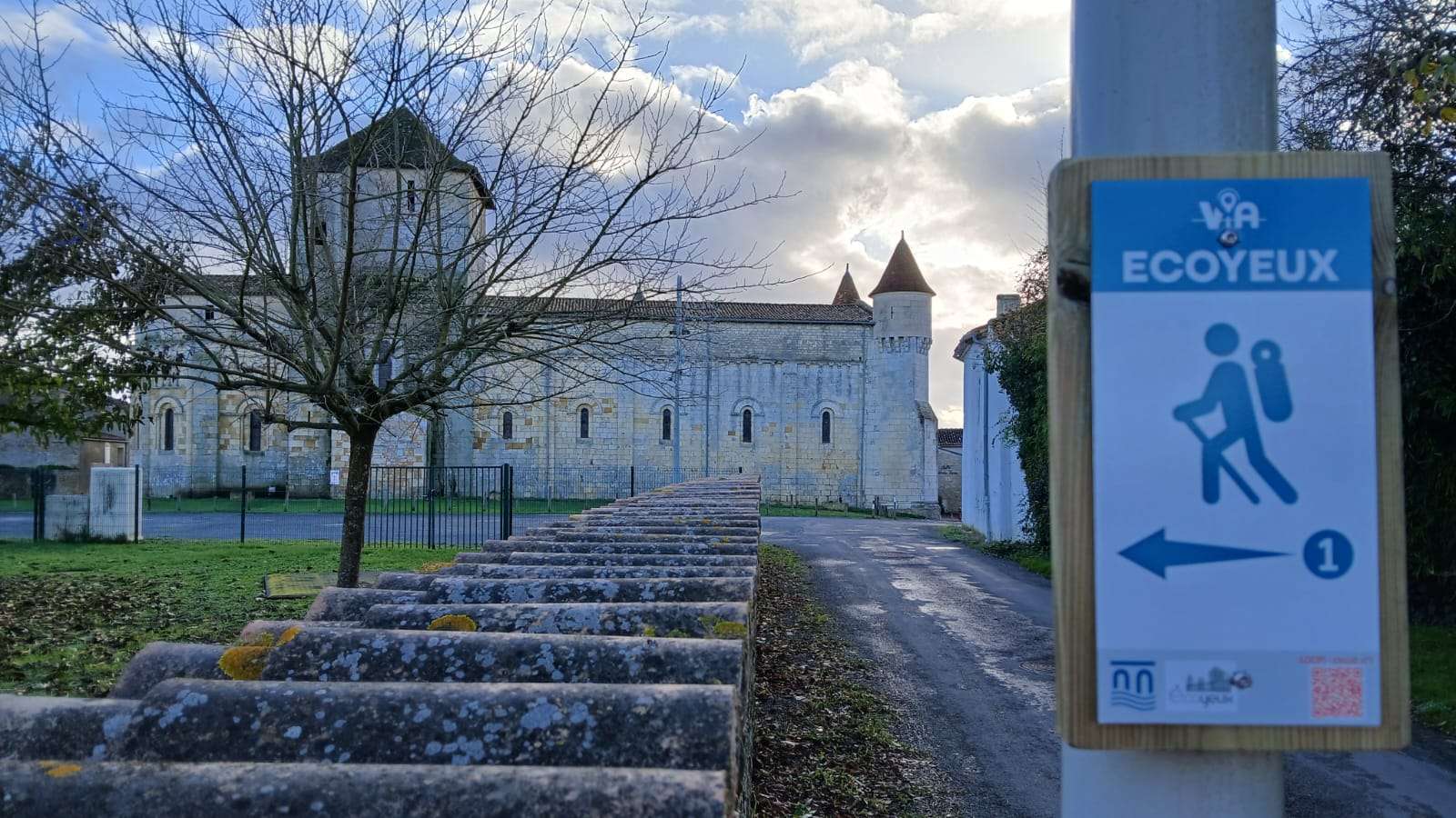 Découvrez le village d'Ecoyeux et son église Saint-Vivien, à l’allure de forteresse.