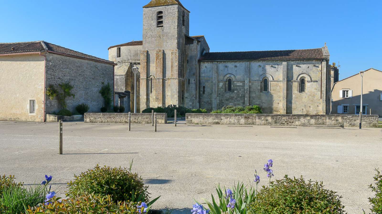 Votre parcours débute à l’église Saint-Nazaire de Migron qui se distingue par son portail monumental s’ouvrant sur le mur sud de la nef, ce qui est rare dans la région.