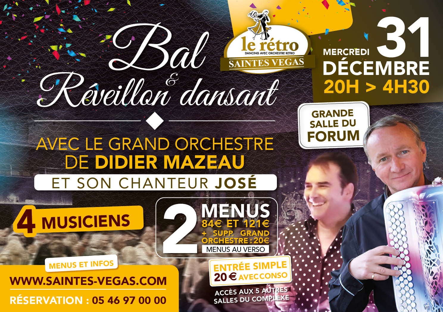 - Réveillon dansant au Rétro dancing (complexe Végas à Saintes), le 31 décembre à partir de 20h