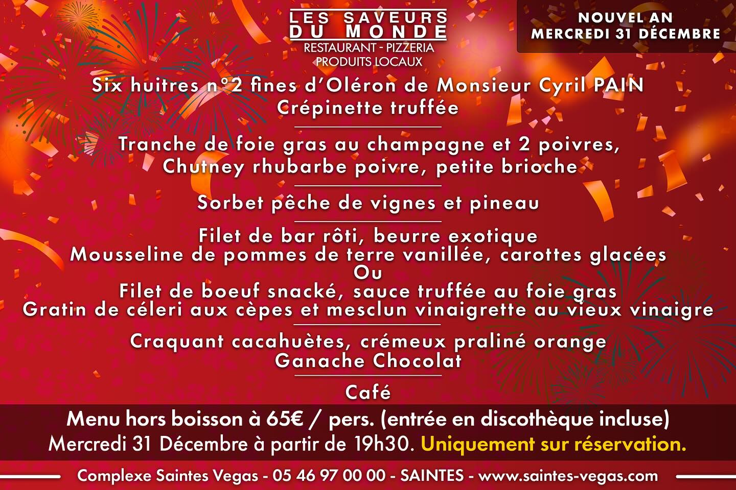 - Les Saveurs du Monde : menu de réveillon avec entrée discothèque