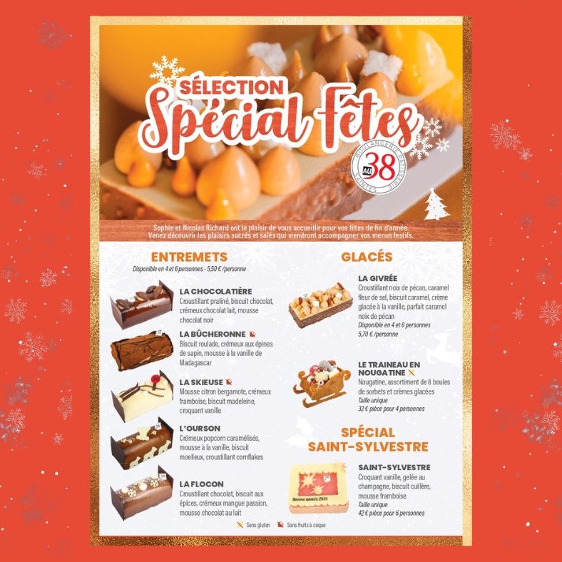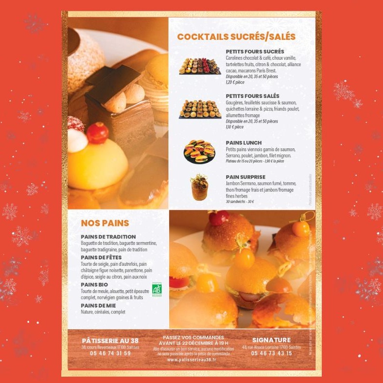 - Pâtisserie au 38 – carte des bûches et cocktails
