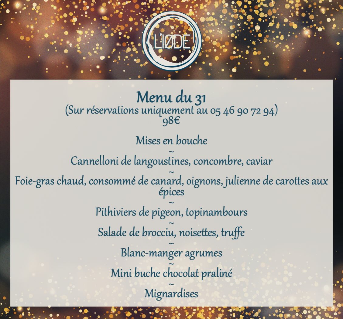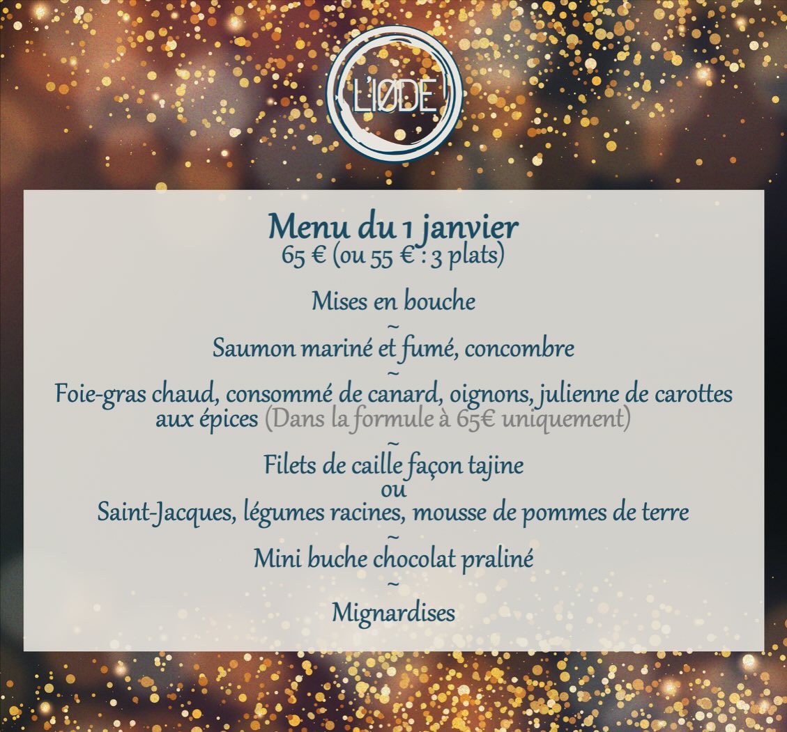 - L’Iode : 31 décembre midi et soir – menu spécial
