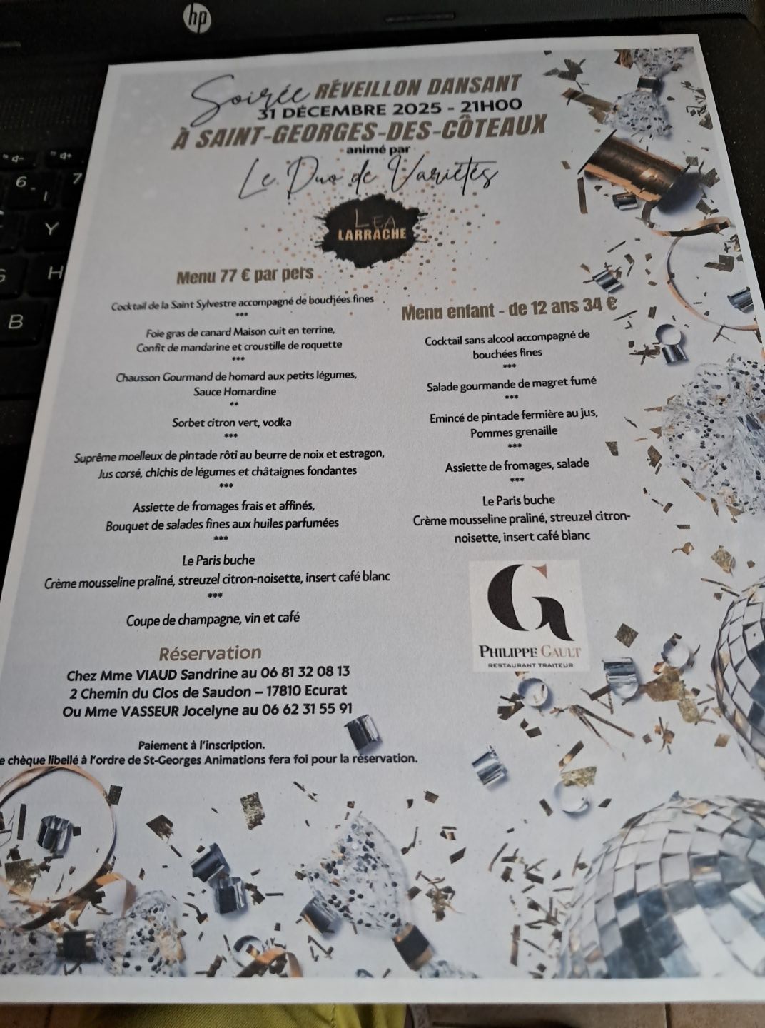 - Réveillon à Saint-Georges-des-Coteaux le 31 décembre à 21h